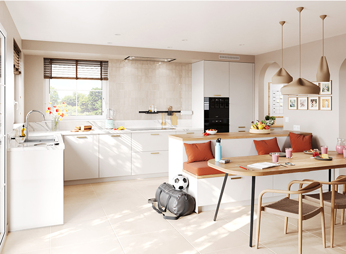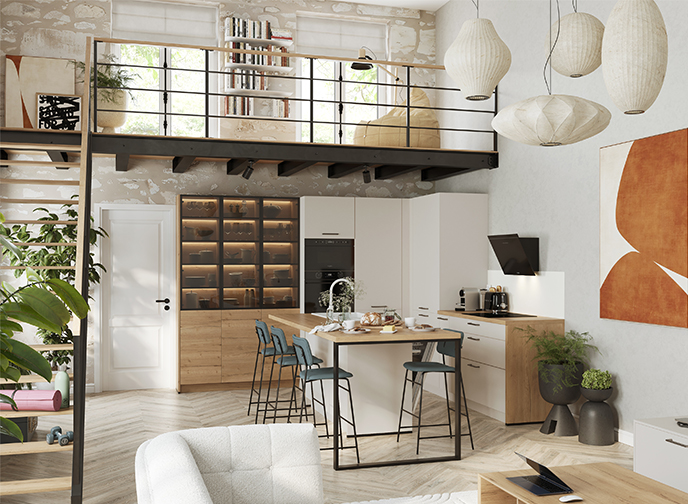 Chez ixina, plusieurs modèles incarnent à merveille cette esthétique aérienne. De l’épuré au convivial, du mat au lumineux — chacun capture à sa façon la légèreté du Cloud Dancer. Découvrez l’ensemble de nos cuisines ou consultez notre catalogue pour toutes nos inspirations.