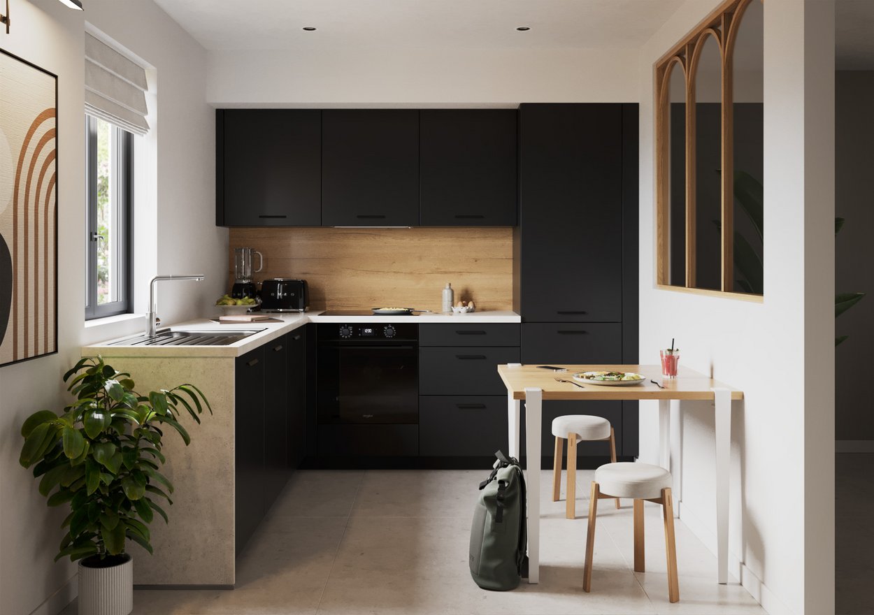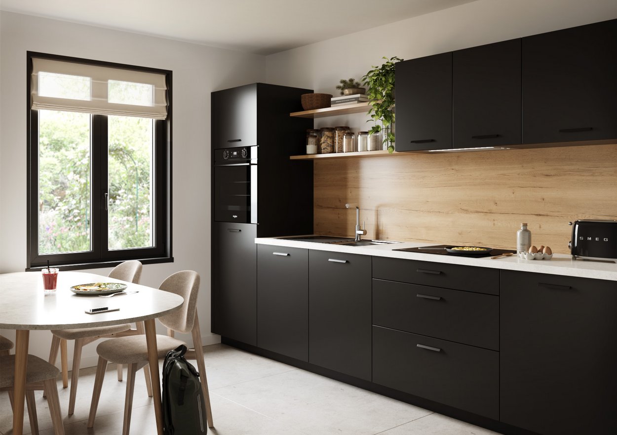 Pensée pour ceux qui vivent intensément chaque moment, la cuisine Dolce Chic incarne le parfait équilibre entre design affirmé et fonctionnalité du quotidien. Avec ses façades noires, profondes et raffinées, elle s’intègre harmonieusement dans les intérieurs modernes et épurés, offrant un espace aussi esthétique que chaleureux.